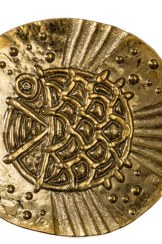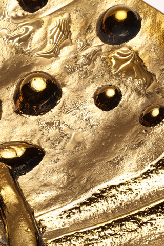 Goldfish è un'opera decorativa da parete realizzata a mano in vetro artistico, rifinita in una radiosa tonalità oro grazie all'esclusivo rivestimento in titanio sviluppato dai nostri designer. La sua forma scultorea fonde texture astratte con un significato simbolico: il pesce, spesso associato a prosperità e flusso, sembra emergere dalla superficie come una storia congelata in movimento.