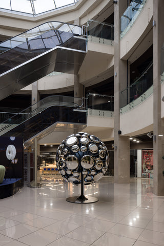 Esplora la fusione tra arte e spazio al centro commerciale Domosphere con la scultura Space Expansion : un progetto impressionante di Serhii e Ihor Fomichov.