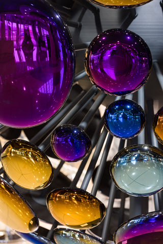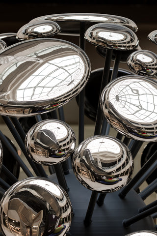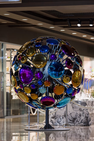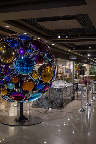 Al centro commerciale Domosfera, Space Expansion si presenta come un'installazione pubblica che accoglie i visitatori con due magnifiche sculture alte due metri, che incarnano la fusione tra visione artistica e tecnologie di produzione di materiali all'avanguardia. Ogni elemento sferico di queste costruzioni è realizzato in vetro con rivestimento in titanio, creando un'incantevole interazione di riflessi e sfumature.