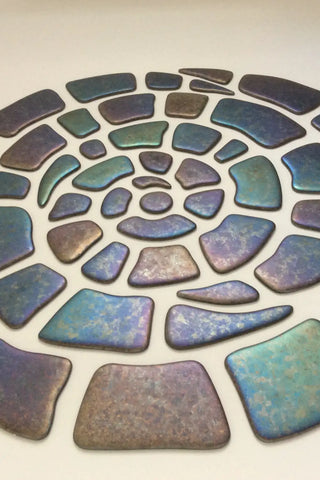 La composizione murale "Spiral Aurora" trasforma il vetro in una ruota cromatica in lento movimento. Un sottile strato di vernice si muove tra lo smeraldo e un tenue fucsia, così che la spirale appaia diversa nella foschia del mattino, nel bagliore di mezzogiorno o alla luce di una candela. Gli artigiani piegano a mano ogni goccia, la incastrano nell'elica e poi la lucidano fino a quando la superficie non si comporta come un liquido. Poiché non esistono due strati con la stessa angolazione, le tonalità si fondono anziché formare una striscia, donando all'occhio una delicata sfumatura che ricorda più l'alba che uno spettacolo. Questa decorazione murale di pregio non si basa solo sulle dimensioni; la sua presenza deriva dal movimento suggerito dalla forma e dal colore. Appendetela su intonaco, cemento o legno puliti: la spirale prenderà in prestito ogni tonalità circostante, la integrerà nella sua tavolozza e manterrà la parete in un dialogo silenzioso con il resto della stanza.