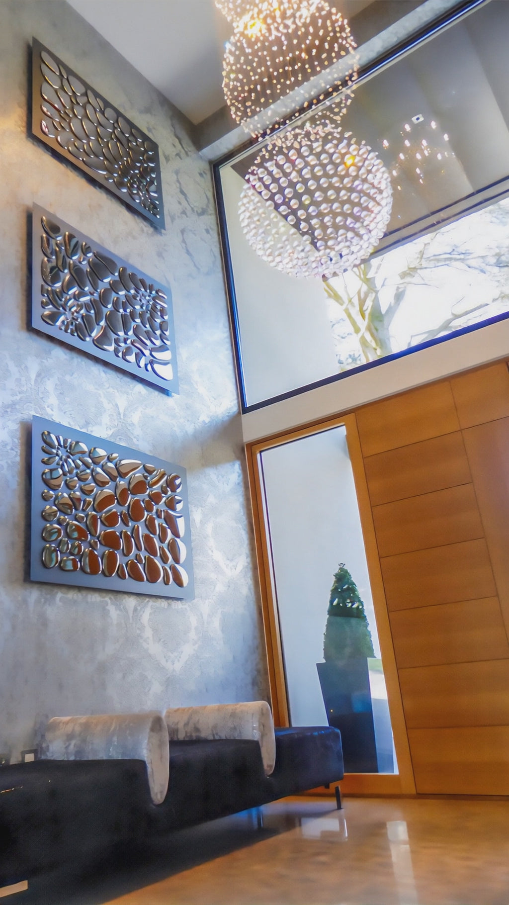 Its mystery makes 77 Drops Mural extraordinary. This art object is a harmonious blend of 77-volume mirror drops, each possessing a unique size and shape. As they converge on the satin glass panel, they conjure a spellbinding visual spectacle that defies reality. Elevate your space and your imagination with this extraordinary masterpiece today!
