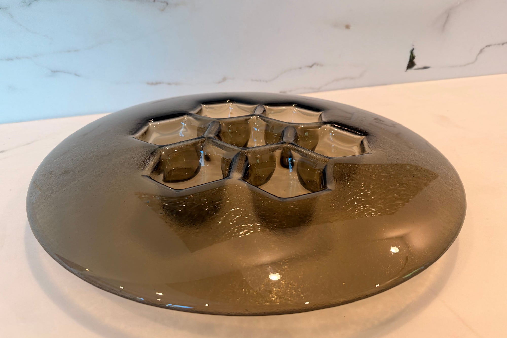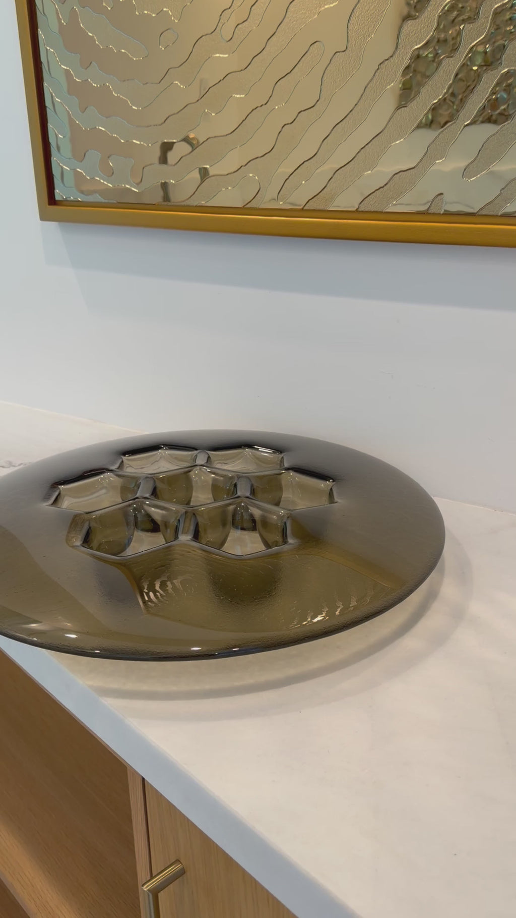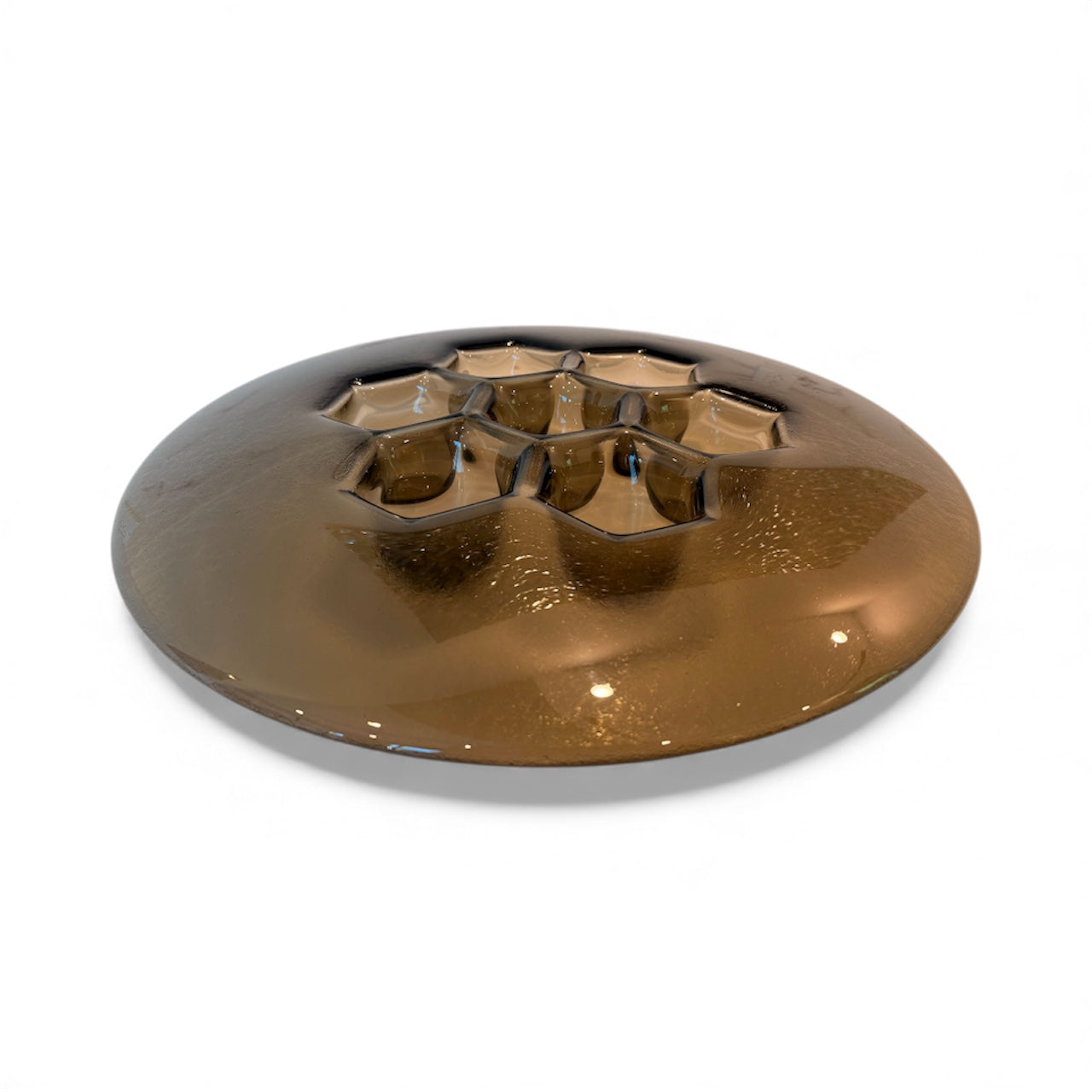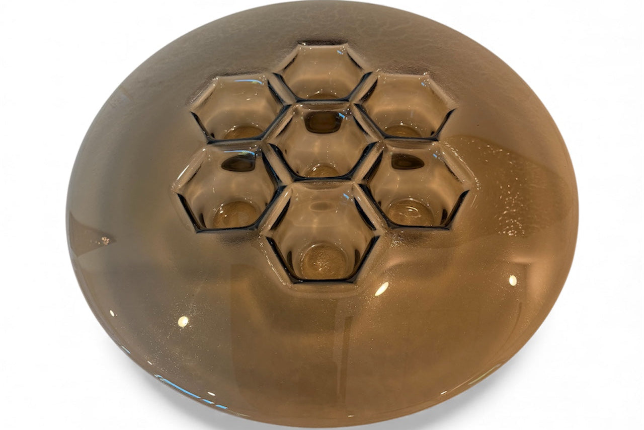 Rich bronze warms the Cells relief, producing a designer statement bowl that bridges metalwork tradition and glass transparency. PlusObject’s platter carries a brown-copper titanium coat that never oxidises, ensuring form keeps its mellow glow. Set it on travertine, leather desktops or brass fixtures. The cellular terrain mirrors surrounding tones and ties disparate textures into one coherent narrative.