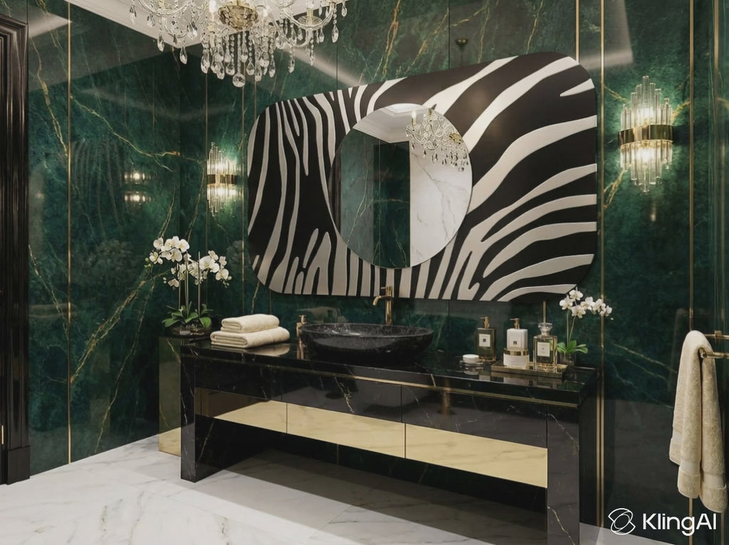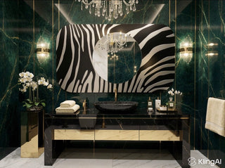 The interior mirror frame is constructed from black glass and features titanium-coated silver elements that evoke the striking patterns of a zebra's coat. This unconventional design, executed with a unique artistic technique, is an arresting focal point that effortlessly draws the viewer's gaze toward the Mirror Zebra. In doing so, it transforms this mirror into a vivid and captivating artistic accent within any interior.