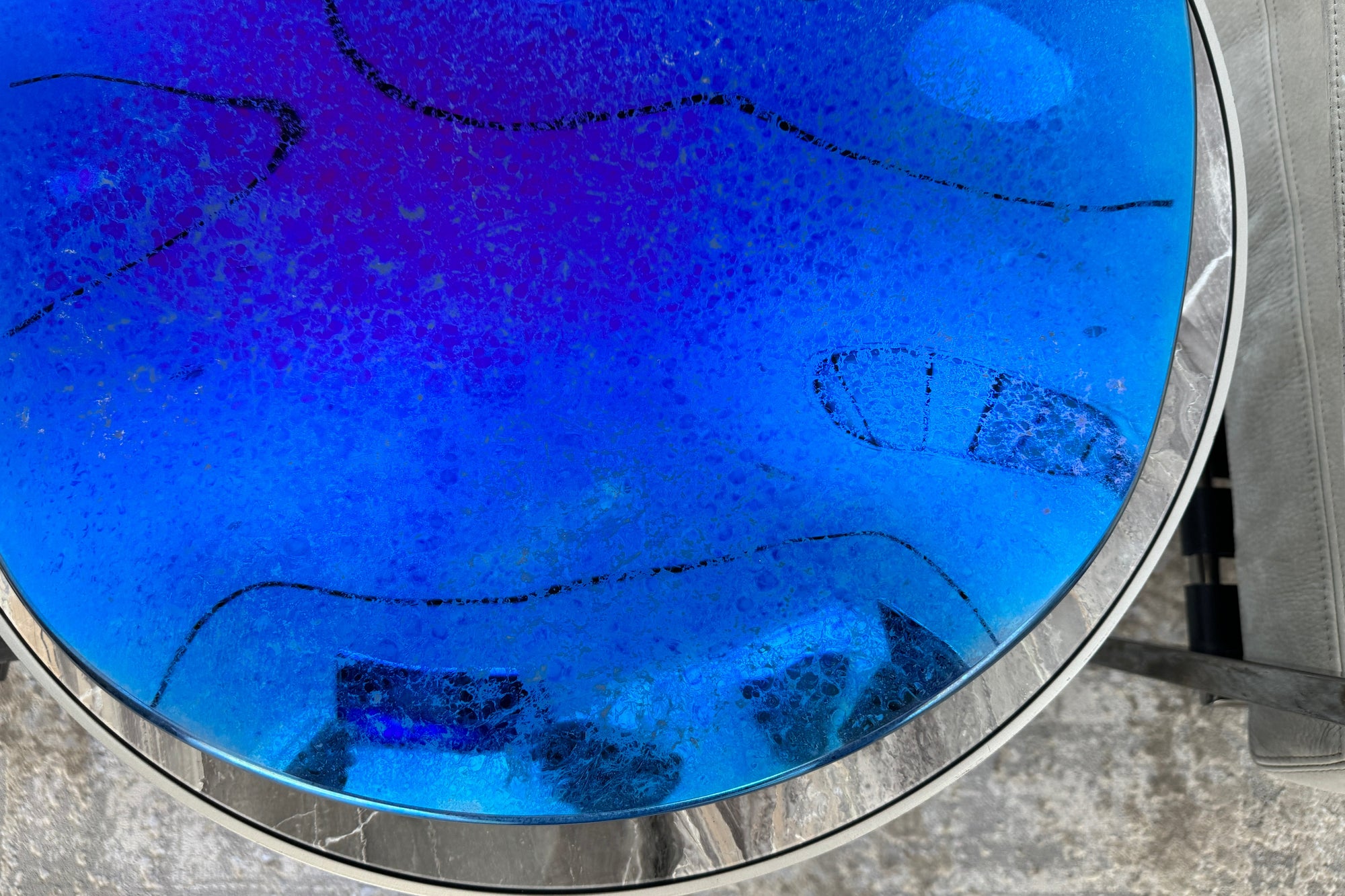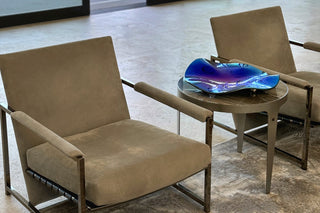 Cobalt pigments tint the molten sheet; a sapphire titanium haze deepens the high-end blue tone until daylight reads oceanic and evening lamps turn it inky. Two diameters – 14.96 in (380 mm) and 19.29 in (490 mm) – let the blue decorative platter echo from cocktail table to boardroom sideboard. Only 8.8 lb (4 kg) in the smaller size invites wall mounting as sculptural art. The inert surface shrugs off citrus and berry acids, so sushi rolls or blueberry tarts leave no trace. Indigo partners with champagne brass, smoked mirrors and velvet upholstery, anchoring spaces that demand depth without clutter.