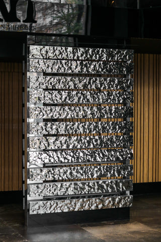 Зайдіть до лобі, де наші панелі Vento елегантно обрамляють зону рецепції, задаючи сучасний тон простору. На шляху до ліфта на вас чекає інтерактивна інсталяція зі смужками Aqua, які граційно обертаються й створюють захопливі відблиски.