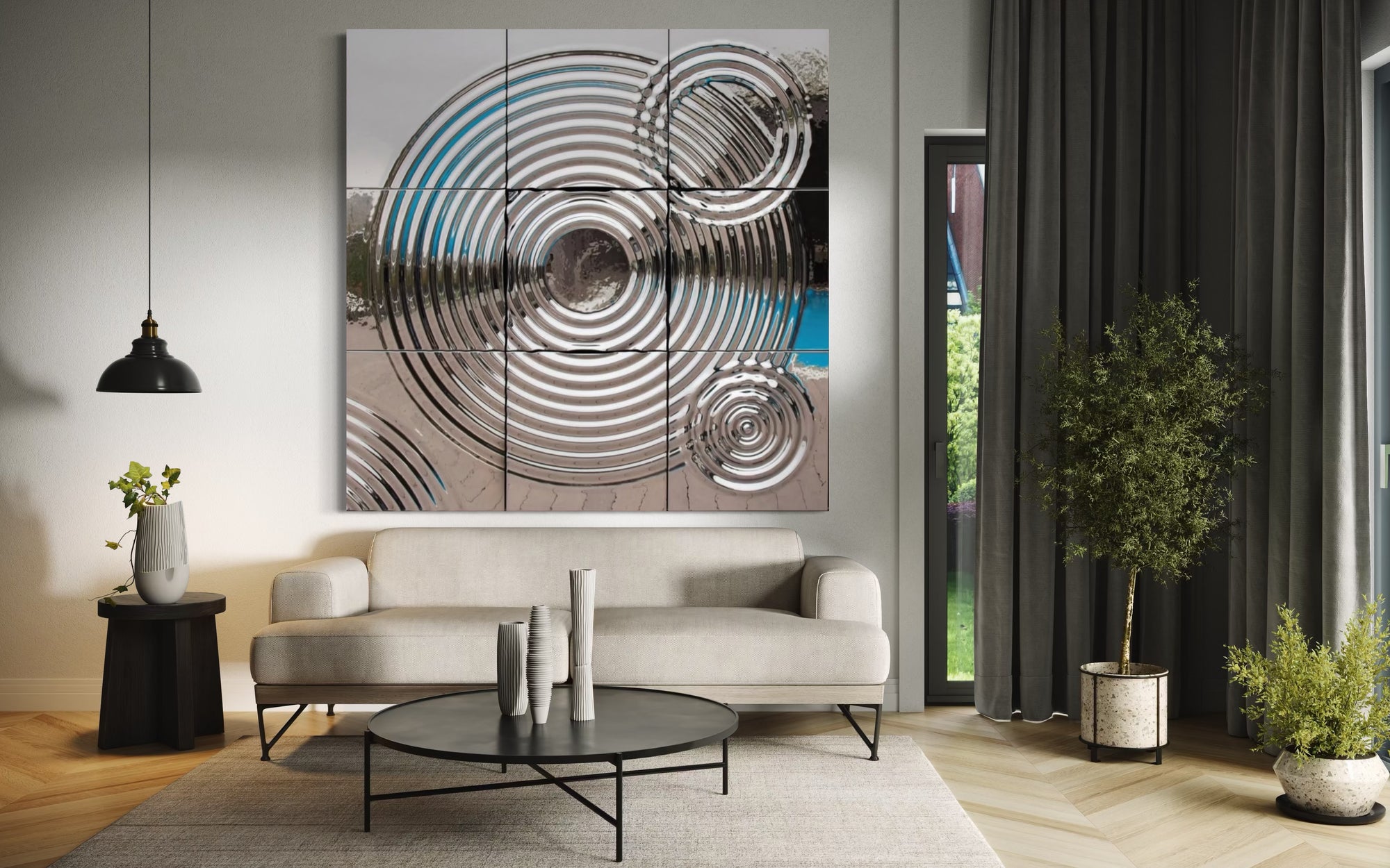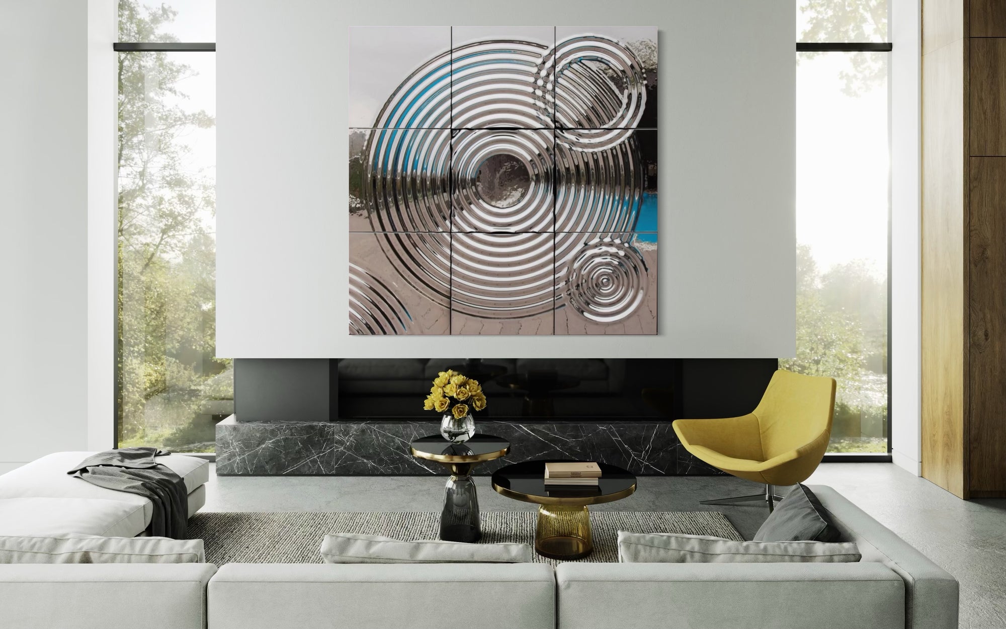 Interference — модульний настінний декор зі скла від PlusObject, вражаюча композиція з дев’яти елементів, створена для того, щоб зачаровувати та змінювати будь-який простір.